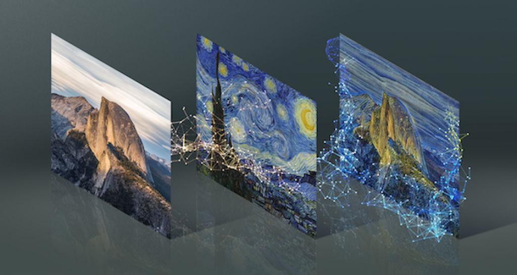 The Artistic Style Transfer demo takes the aesthetic of one image and applies it to another, with realistic results. For example, a user can upload a photo of their friends and convert it to look like it was painted in the style of van Gogh style. This research was introduced in August at SIGGRAPH, in Vancouver.