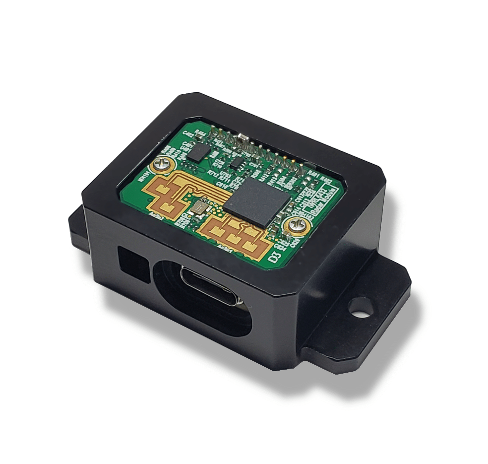 Another thing that’s interesting about millimeter wave radar is the sensors. Cameras and illumination can be somewhat large and can contain moving parts (for focus or scanning). Millimeter wave radar is solid state and has no moving parts. It can also be quite small. See the figure below, which shows one of our radar sensors. This model is approximately 25 x 25 x 15 mm (1 x 1 x 0.6 inches).