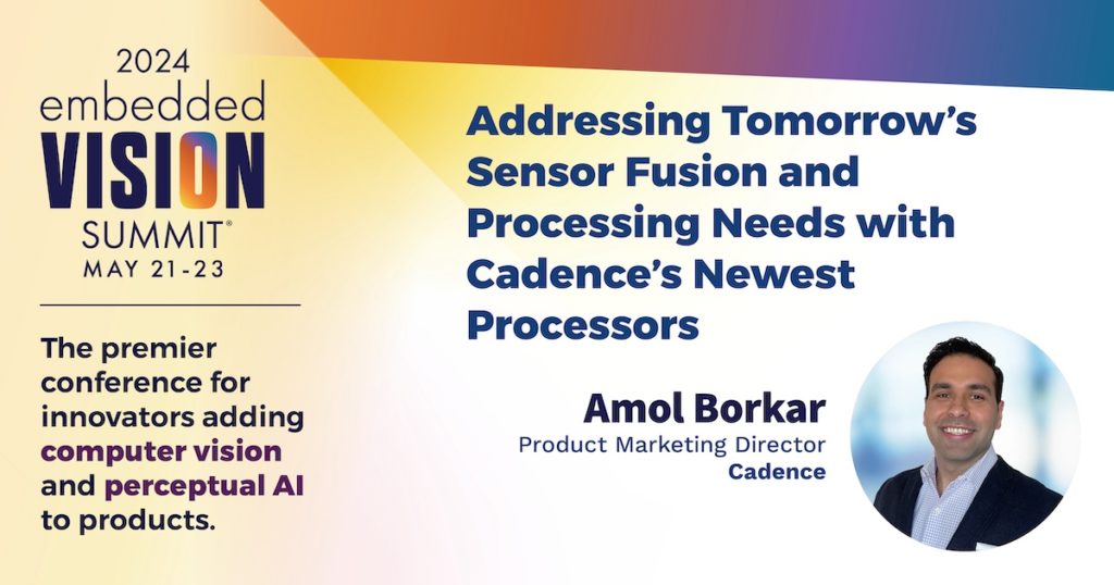 Amol Borkar, Product Marketing Director at Cadence, presents the “Addressing Tomorrow’s Sensor Fusion and Processing Needs with Cadence’s Newest Processors” tutorial at the May 2024 Embedded Vision Summit.