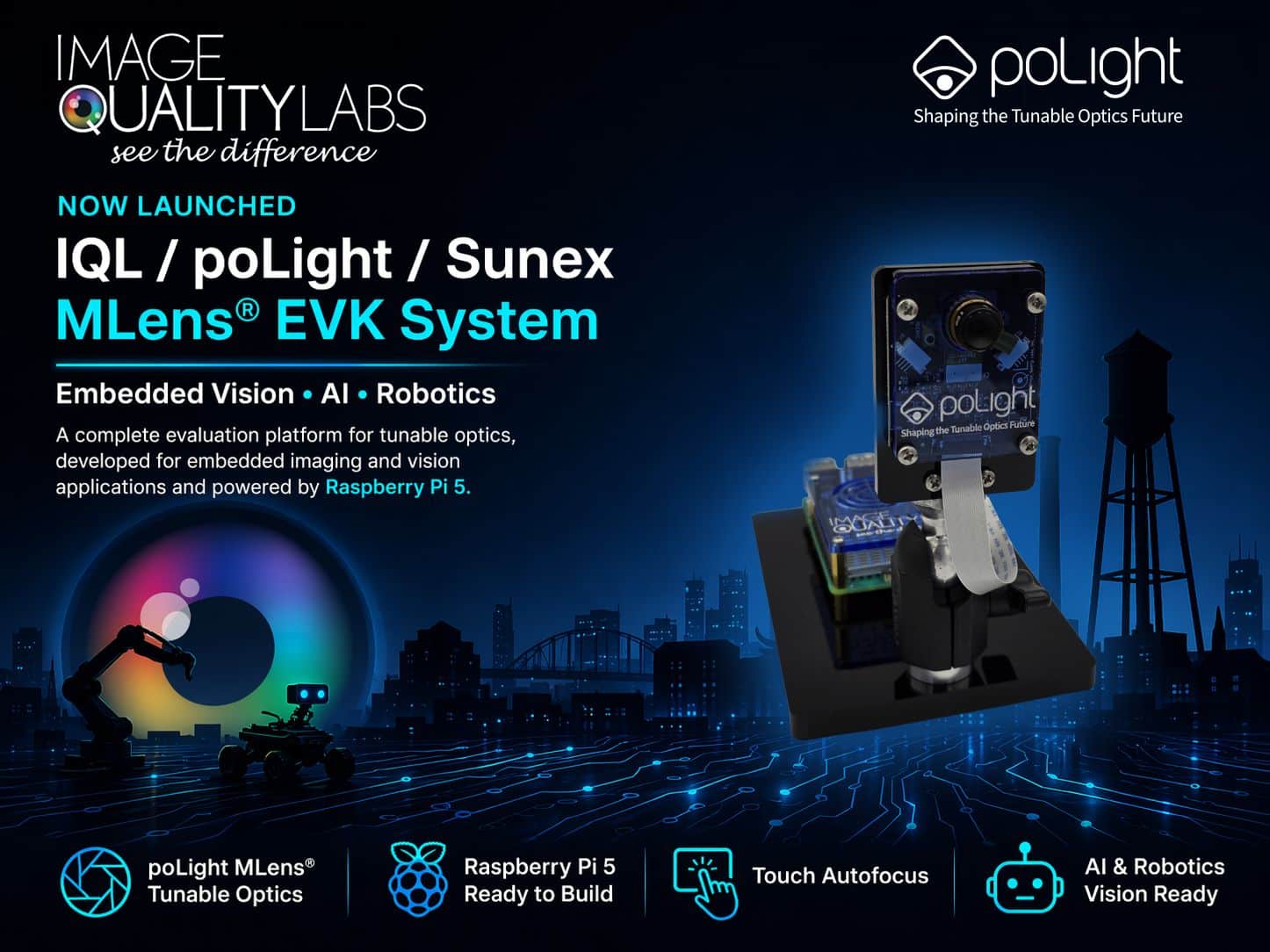 DURHAM, N.C., April 16, 2026 — Image Quality Labs, Inc. today announced the launch of the IQL/poLight ASA/Sunex, Inc. MLens® EVK System, a new evaluation platform designed to help engineers assess electronically tunable focus for embedded vision, machine vision, robotics and AI imaging applications. The new development kit combines poLight’s MLens® tunable lens technology, Sunex […]